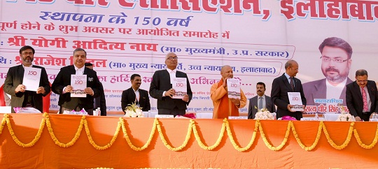 उत्तर प्रदेश के मुख्यमंत्री योगी आदित्यनाथ ने इलाहाबाद हाईकोर्ट बार एसोसिएशन के 150 वर्ष पूर्ण होने के अवसर पर बधाई देते हुए कहा कि प्रयागराज की धरती पर पूरा प्रदेश व देश मां गंगा, यमुना एवं सरस्वती के संगम पर पवित्र स्नान करके कुम्भ व माघ मेले के इस आयोजन के साथ अपने आप को सहभागी बना के जीवन में सफलता के मार्ग का अनुश्रवण करने का संकल्प लेता है। प्रदेश का प्रत्येक नागरिक अपनी न्याय की अभिलाषा में प्रयागराज की धरती में आता है।