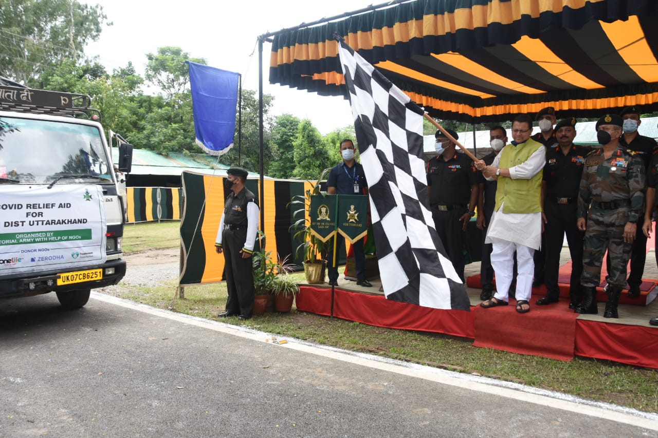 देहरादून 31 जुलाई।मुख्यमंत्री पुष्कर सिंह धामी ने 127 ईको बटालियन, गढ़ी कैंट में अपर महानिदेशक प्रादेशिक सेना जनरल गुलाब सिंह रावत द्वारा प्रदान की गई कोविड राहत सामग्री का फ्लैग ऑफ किया। प्रदेश के दूरस्थ क्षेत्रों के लिए इस कोविड राहत सामग्री का प्रबंध 127 बटालियन प्रादेशिक सेना गढ़वाल राइफल्स द्वारा विभिन्न गैर सरकारी संगठनों के माध्यम से की गई।