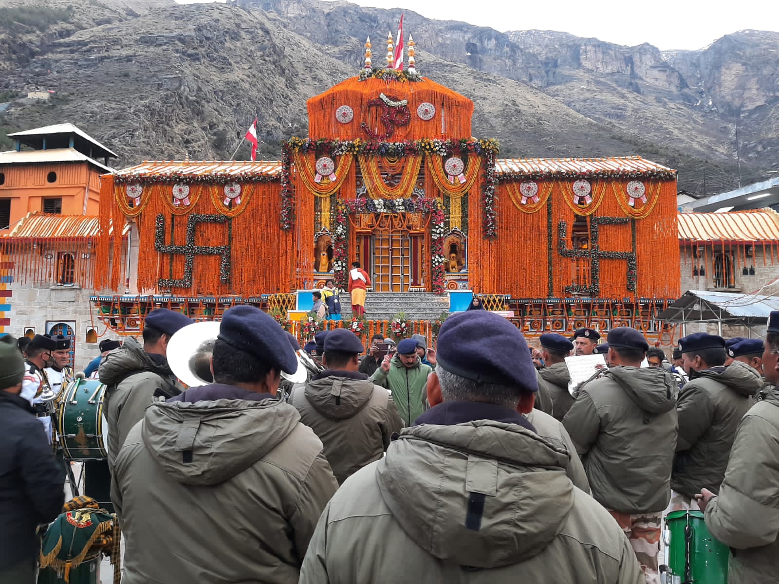 •10 हजार से अधिक श्रद्धालुओं ने किये अखंड ज्योति के दर्शन।श्री बदरीनाथ धाम 27 अप्रैल। श्री बदरीनाथ धाम के कपाट आज प्रात: 7 बजकर 10 मिनट पर विधि-विधान से वेद ऋचाओं के उदघोष के साथ हल्की बर्फबारी के बीच श्रद्धालुओ के दर्शनार्थ खोल दिये गये हैं। इस अवसर पर श्री बदरीनाथ मंदिर को 25 क्विंटल विभिन्न प्रकार के फूलों से सजाया गया गया था। मंदिर परिसर में सेना के बैंड की भक्तिमय धुनों तथा जय बदरीविशाल के उदघोष से संपूर्ण बदरीपुरी गुंजायमान हो रही थी। माणा बामणी गांव के महिला मंगल दल द्वारा परंपरागत भक्ति गीतों से शमा बांधा दानीदाताओं तथा भारतीय सेना आईटीबीपी ग्रेफ द्वारा भंडारे का आयोजन किया गया था। कपाट खुलते समय 10 हजार से अधिक श्रद्धालुओं ने अखंड ज्योति के दर्शन किये।