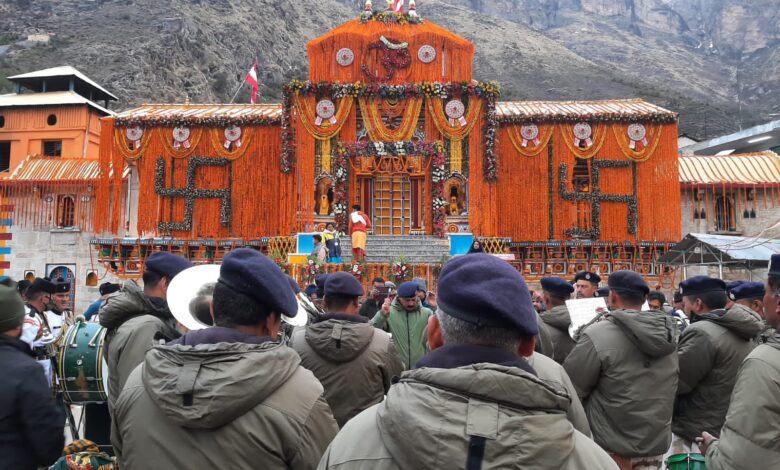 •10 हजार से अधिक श्रद्धालुओं ने किये अखंड ज्योति के दर्शन।श्री बदरीनाथ धाम 27 अप्रैल। श्री बदरीनाथ धाम के कपाट आज प्रात: 7 बजकर 10 मिनट पर विधि-विधान से वेद ऋचाओं के उदघोष के साथ हल्की बर्फबारी के बीच श्रद्धालुओ के दर्शनार्थ खोल दिये गये हैं। इस अवसर पर श्री बदरीनाथ मंदिर को 25 क्विंटल विभिन्न प्रकार के फूलों से सजाया गया गया था। मंदिर परिसर में सेना के बैंड की भक्तिमय धुनों तथा जय बदरीविशाल के उदघोष से संपूर्ण बदरीपुरी गुंजायमान हो रही थी। माणा बामणी गांव के महिला मंगल दल द्वारा परंपरागत भक्ति गीतों से शमा बांधा दानीदाताओं तथा भारतीय सेना आईटीबीपी ग्रेफ द्वारा भंडारे का आयोजन किया गया था। कपाट खुलते समय 10 हजार से अधिक श्रद्धालुओं ने अखंड ज्योति के दर्शन किये।