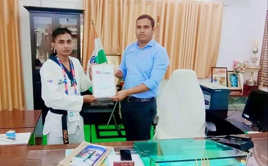 रेणुकूट ( सोनभद्र )- रेणुकूट सोनभद्र उत्तर प्रदेश के निवासी रवि सिंह पुत्र श्री महामाया प्रसाद सिंह को आज जिलाधिकारी श्री चन्द्र विजय सिंह, आई0ए0एस0 सोनभद्र महोदय ने अपने कार्यालय में नेपाल देश के पोखरा शहर में वर्ल्ड ताईक्वानडो द्वारा आयोजित जी-2 अन्तर्राष्ट्रीय ताईक्वानडो प्रतियोगिता में रेनुकूट के रवि सिंह भारत – 8236 सीनियर अंडर 54 किलो वेट कैटगरी में भारत का प्रतिनिधित्व किया इस प्रतियोगिता में विभिन्न देशों के करीब ढाई हजार खिलाड़ी प्रतिभाग किया जो सभी खिलाड़ियों को अन्तर्राष्ट्रीय वर्ल्ड रैकिंग मिलेगा रवि ने भले ही देश के लिए मेडल नहीं ला पाए रवि ने कहा अगली बार और मेहनत करके भारत के लिए पदक जीतेंगे।