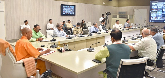 उत्तर प्रदेश के मुख्यमंत्री योगी आदित्यनाथ ने आज यहां अपने सरकारी आवास पर वीडियो कॉन्फ्रेंसिंग के माध्यम से मण्डल, जनपद, तहसील एवं ब्लॉक स्तर के अधिकारियों के साथ विकास कार्यों, कानून-व्यवस्था और अन्य विषयों के सम्बन्ध में समीक्षा बैठक की।