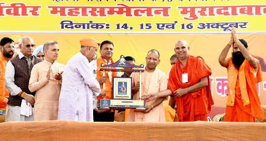 उत्तर प्रदेश के मुख्यमंत्री योगी आदित्यनाथ ने आज जनपद मुरादाबाद में महात्मा नारायण स्वामी के 75वें निर्वाण दिवस पर आयोजित आर्यवीर महासम्मेलन को सम्बोधित करते हुए कहा कि देश की आजादी में आर्य समाज की महत्वपूर्ण भूमिका रही है। सौभाग्य का विषय है कि हम आजादी का अमृत महोत्सव मना रहे हैं। विगत 08 वर्षों में प्रधानमंत्री श्री नरेन्द्र मोदी जी के नेतृत्व एवं मार्गदर्शन में एक भारत श्रेष्ठ भारत की संकल्पना साकार हो रही है। भारत को संगठित एवं श्रेष्ठ बनाने का जो लक्ष्य आर्य समाज के सभी पूज्य संतों ने देखा था, वह आज पूरा हो रहा है।
