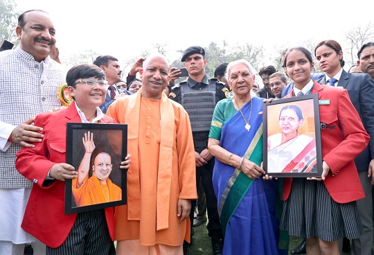 राज्यपाल एवं मुख्यमंत्री जी को प्रतीक चिन्ह भेंट कर स्वागत किया गया। राज्यपाल जी एवं मुख्यमंत्री जी को जनपद बागपत के प्रगतिशील किसान श्री जय देव सिंह ने स्वयं उत्पादित शहद तथा जनपद बाराबंकी के किसान श्री अमरेन्द्र प्रताप सिंह ने स्वयं उत्पादित स्ट्राॅबेरी भेंट की। स्कूल के दो विद्यार्थियों ने राज्यपाल जी एवं मुख्यमंत्री जी को उनकी पेंटिंग भेंट की।