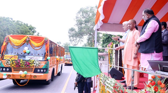 मुख्यमंत्री आज यहां अपने सरकारी आवास पर उत्तर प्रदेश राज्य सड़क परिवहन निगम के स्थापना दिवस के उपलक्ष्य में प्रदेश के विभिन्न जनपद मुख्यालयों से राष्ट्रीय राजधानी नई दिल्ली के लिए 93 नई राजधानी सेवा एवं 07 साधारण बी0एस0-6 बसांे को रवाना करने के अवसर पर आयोजित कार्यक्रम में अपने विचार व्यक्त कर रहे थे। उन्होंने राजधानी सेवा एवं साधारण बी0एस0-6 बसों को हरी झण्डी दिखाकर रवाना किया। इस अवसर पर उत्तर प्रदेश राज्य सड़क परिवहन निगम की विकास यात्रा तथा उपलब्धियों पर आधारित एक लघु फिल्म का प्रदर्शन किया गया।