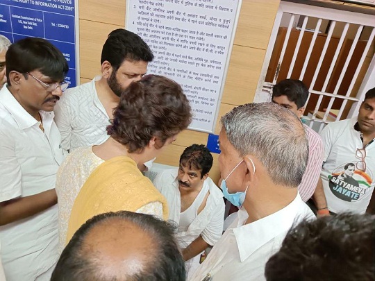 मुख्य विपक्षी दल ने ये आरोप राहुल गांधी की ईडी के समक्ष पेशी पर पार्टी सत्याग्रह को रोकने के लिए केंद्र की मोदी सरकार ने अघोषित आपातकाल लगा दिया। प्रियंका गांधी हिरासत में लिए गए पार्टी कार्यकर्ताओं से मिलने तुगलक रोड थाने पहुंच गई हैं। इस दौरान प्रियंका गांधी ने दिल्ली के तुगलक रोड थाने ले जाये गए कांग्रेस नेताओं से मुलाकात की। यहां केसी वेणुगोपाल, हरीश रावत से उन्होंने बातचीत की।