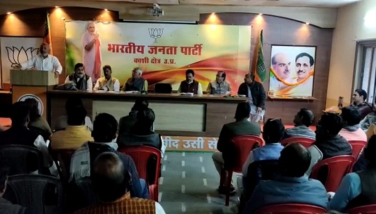 भाजपा महानगर के द्वारा आज जन विश्वास यात्रा को लेकर एक बैठक का आयोजन किया गया। बैठक में उपस्थित काशी क्षेत्र के अध्यक्ष महेश चंद्र श्रीवास्तव ने जन विश्वास यात्रा के सफलता को कार्यकर्ताओं की जिम्मेदारी बताई। उन्होंने कहा कि यह कार्यकर्ताओं की जिम्मेदारी बनती है कि जन विश्वास यात्रा की सफलता के लिए बैठक करके, टोलियां बनाकर पूरे मतदाताओं को आमंत्रित करें।