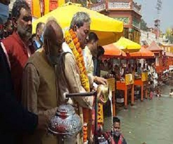 मुख्यमंत्री तीरथ सिंह रावत पहुंचे हरिद्वार, किया गंगा पूजन