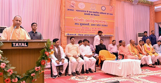 उत्तर प्रदेश के मुख्यमंत्री योगी आदित्यनाथ ने आज जनपद महराजगंज का हवाई सर्वेक्षण कर बाढ़ की स्थिति का निरीक्षण किया। उन्होंने धानी विकासखण्ड के महेशराम अशोक कुमार कन्या इण्टर कॉलेज में स्थित बाढ़ राहत केन्द्र पहुंच कर बाढ़ प्रभावितों का कुशलक्षेम पूछा और उनसे संवाद किया। इस अवसर पर मुख्यमंत्री जी द्वारा बाढ़ प्रभावित लोगों को राहत सामग्री वितरित की गयी। उन्होंने गृह हानि तथा पशुहानि के प्रभावित लोगांे को मुआवजा राशि का चेक तथा 13 अन्य लोगों को अनुदान राशि का चेक वितरित किया।