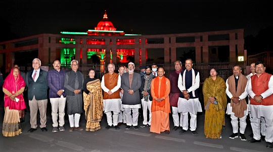 उत्तर प्रदेश के मुख्यमंत्री योगी आदित्यनाथ ने आज यहां आजादी के अमृत महोत्सव की श्रृंखला में लोक भवन पर डायनमिक फसाड लाइटिंग का लोकार्पण किया। इस अवसर पर मुख्यमंत्री जी ने कहा कि आज का दिन अत्यन्त महत्वपूर्ण है। दुनिया में क्रिसमस का आयोजन हर्षोल्लास के साथ किया जा रहा है। आज पूरा देश पूर्व प्रधानमंत्री श्रद्धेय श्री अटल बिहारी वाजपेयी जी की जयन्ती को सुशासन दिवस के रूप में मना रहा है। महान शिक्षाविद व समाजसेवी पं0 मदन मोहन मालवीय जी की भी आज जयन्ती है।