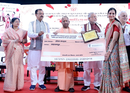 इस अवसर पर ग्राम्य विकास राज्य मंत्री श्रीमती विजय लक्ष्मी गौतम, मुख्य सचिव श्री दुर्गा शंकर मिश्र, कृषि उत्पादन आयुक्त श्री मनोज कुमार सिंह, निदेशक पंचायतीराज श्री प्रमोद कुमार उपाध्याय, ग्राम पंचायतों के प्रधान एवं ग्राम पंचायत सचिव सहित अन्य वरिष्ठ अधिकारी उपस्थित थे।