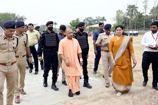 उत्तर प्रदेश के मुख्यमंत्री योगी आदित्यनाथ ने आज जनपद संत कबीर नगर में राष्ट्रपति श्री रामनाथ कोविंद जी के आगामी 05 जून, 2022 के प्रस्तावित भ्रमण कार्यक्रम के दृष्टिगत मगहर में निर्माण कार्यों का स्थलीय निरीक्षण कर तैयारियों एवं व्यवस्थाओं का जायजा लिया। उन्होंने संत कबीर समाधि स्थल, मजार, गुफा, नवनिर्मित संत कबीर अकादमी एवं शोध संस्थान एवं संत कबीर म्युरल पेण्टिंग दीर्घा इण्टरप्रेटेशन सेण्टर, एक्ज़ीबीशन हॉल तथा राष्ट्रपति जी के आगमन हेतु बनाए जा रहे हेलीपैड आदि का निरीक्षण किया। उन्होंने संत कबीरदास की मजार/समाधि पर पुष्प भी अर्पित किये।