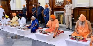 मुख्यमंत्री ने कहा कि जब व्यक्ति किसी कार्य को धर्म मानता है, तो उसके लिए दावा नहीं करता है, वह एक कर्तव्य मानकर उस पथ पर आगे बढ़ जाता है। महाराजा रणजीत ंिसंह, उनके वंशजों या सिख समाज ने कभी यह दावा नहीं किया कि उन्होंने काशी विश्वनाथ मन्दिर को स्वर्ण मण्डित कराया। गुरु तेग बहादुर जी का बलिदान कश्मीरी पण्डितों, देश तथा धर्म के लिए था। गुरु तेग बहादुर एक आध्यात्मिक पुंज थे। एक गुरु के रूप में हम सबके लिए आराध्य हैं। उन्होंने अपने देश व धर्म की मर्यादाओं का कभी उल्लंघन नहीं किया। उन्होंने कहा कि मुख्यमंत्री आवास पर गुरु नानक देव जी के 550वें प्रकाश पर्व के आयोजन का अवसर उन्हें प्राप्त हुआ था।