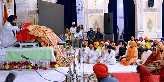मुख्यमंत्री ने श्री गुरु ग्रन्थ साहिब जी को अपने सिर पर रखकर आसन पर स्थापित किया