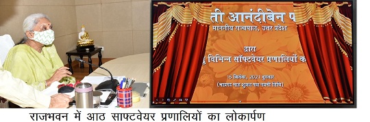 उत्तर प्रदेश की राज्यपाल श्रीमती आनंदीबेन पटेल ने आज राजभवन की कार्य व्यवस्थाओं को डिजिटल करने के लिए आठ साफ्टवेयर प्रणालियों का लोकार्पण किया। इन प्रणालियों में जिन व्यवस्थाओं को शामिल किया गया है, उनमें राज्यपाल कार्यालय के लिए कार्मिक प्रबन्धन प्रणाली-मानव सम्पदा, राजभवन कर्मिकों को राज्य सरकार की ई-पेंशन प्रणाली से जोड़ा जाना, राजभवन सचिवालय के चतुर्थ श्रेणी के कर्मिकों के लिए जी0पी0एफ0 प्रबन्धन प्रणाली, राजभवन गेट पास एवं परिचय-पत्र प्रबन्धन प्रणाली, आनलाइन राजभवन लाइब्रेरी पोर्टल, राजभवन कर्मिकों के लिए बायोमैट्रिक उपस्थिति प्रणाली, राज्य सरकार के जन शिकायत निवारण पोर्टल पर राजभवन में प्राप्त शिकायतों के व्यवहरण की व्यवस्था तथा राजभवन में प्राप्त होने वाले उपहारों का डिजिटलाइजेशन शामिल है। लोकार्पण के दौरान राज्यपाल जी ने इन साफ्टवेयर प्रणालियों के संचालन का अवलोकन भी किया।