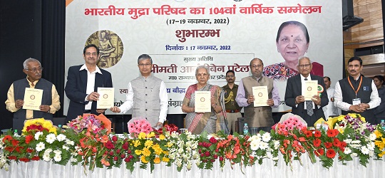 उत्तर प्रदेश की राज्यपाल श्रीमती आनंदीबेन पटेल ने आज अर्न्तराष्ट्रीय बौद्ध संस्थान, गोमतीनगर के प्रांगण में राज्य संग्रहालय, लखनऊ द्वारा 17 से 19 नवम्बर, 2022 तक आयोजित भारतीय मुद्रा परिषद के 104वें वार्षिक सम्मेलन का उद्घाटन किया। इस अवसर पर राज्यपाल जी ने कहा कि मुद्रा किसी भी देश की संस्कृति एवं सभ्यता का प्रतिबिम्ब होती है। इससे तत्कालीन इतिहास एवं अर्थव्यवस्था की जानकारी मिलती है, जिससे हमारी आगामी पीढ़ियों को हमारी समृद्ध संस्कृति का ज्ञान होता है।
