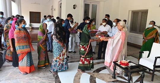 राज्यपाल ने श्रमिक दिवस के अवसर 130 श्रमिकों को साड़ियां और मिठाई वितरित की