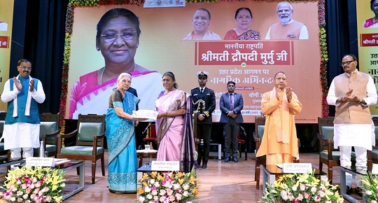 भारत की राष्ट्रपति श्रीमती द्रौपदी मुर्मु आज यहां उत्तर प्रदेश सरकार द्वारा उनके सम्मान में आयोजित नागरिक अभिनंदन कार्यक्रम में सम्मिलित हुईं। इस अवसर पर उन्होंने अपने संबोधन में कहा कि पदभार ग्रहण करने के बाद यह लखनऊ की उनकी पहली यात्रा है। उन्होंने भव्य स्वागत के लिए मुख्यमंत्री जी का आभार प्रकट किया।