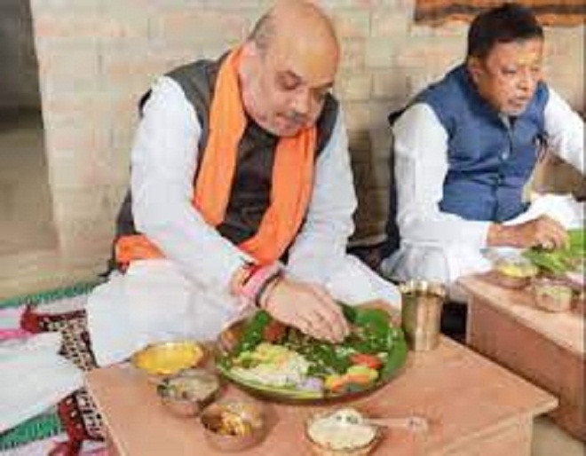 रिक्शा चालक के घर पर अमित शाह ने खाना खाया, किया सरकार बनाने का दावा