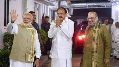 राष्ट्रपति चुनाव के सिलसिले में भारतीय जनता पार्टी (भाजपा) की अहम बैठक से पहले केंद्रीय मंत्री अमित शाह, राजनाथ सिंह तथा भाजपा के राष्ट्रीय अध्यक्ष जेपी नड्डा ने उपराष्ट्रपति एम वेंकैया नायडू से मुलाकात की है। जिसके बाद से इस बात की संभावना प्रबल होती दिख रही है। कि एनडीए की तरफ से वेंकैया नायडू को राष्ट्रपति पद का उम्मीदवार बनाया जा सकता है।