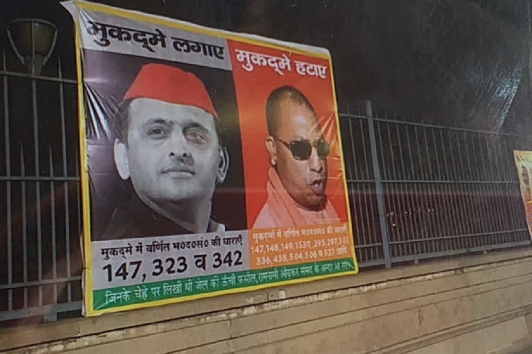 अखिलेश यादव पर दर्ज मुकदमे और सीएम योगी पर पूर्व में दर्ज मुकदमों की जानकारी के साथ विवादित पोस्टर लगाए गए थे। जिनमें अखिलेश यादव की फोटो के साथ कैप्शन था। ‘मुकदमे लगाए’ तो सीएम योगी की फोटो के साथ कैप्शन था ‘मुकदमे हटाए’