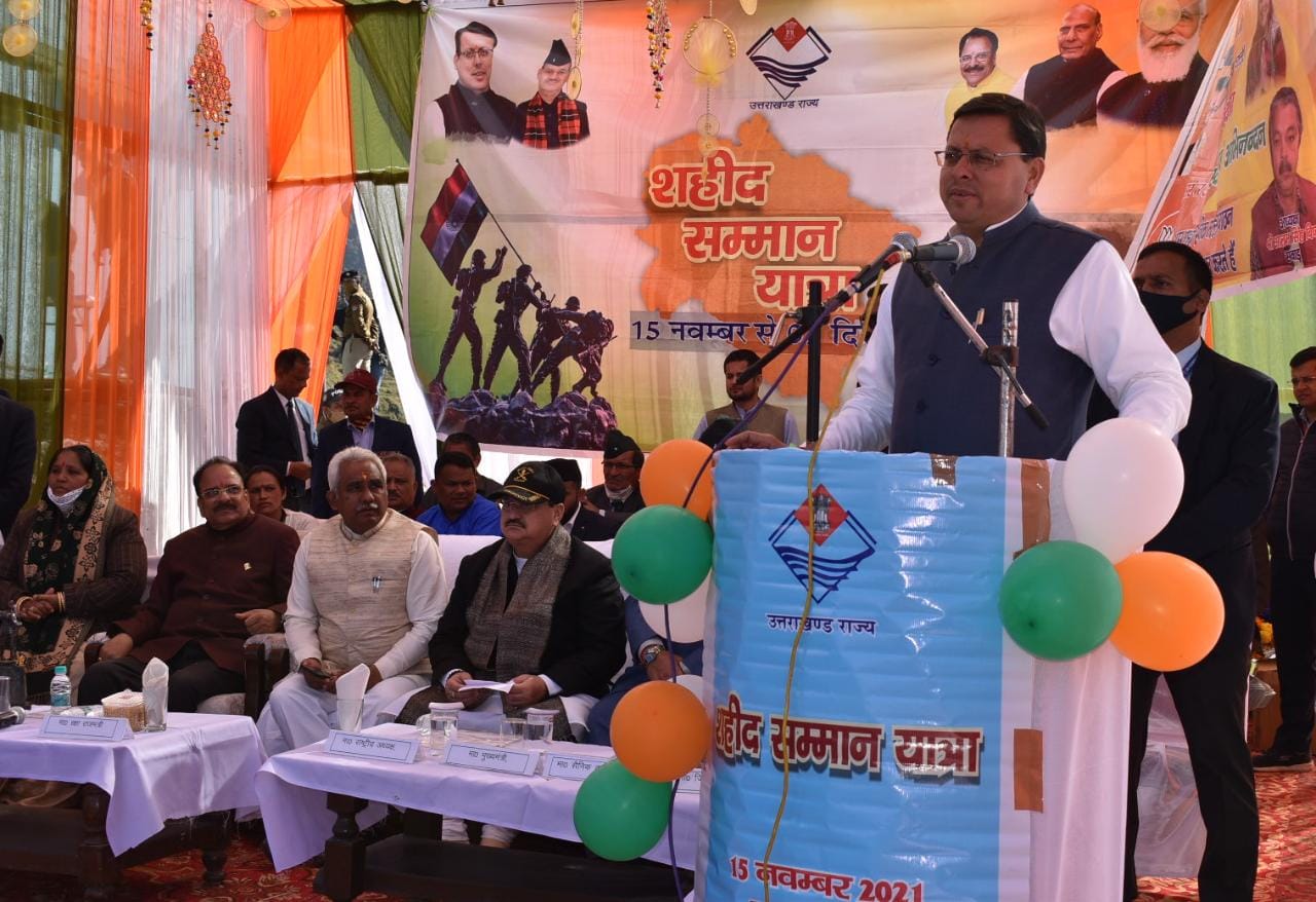 मुख्यमंत्री ने कहा कि केन्द्र और राज्य सरकार का प्रयास है कि हम शहीदों के अभूतपूर्व योगदान को हमेशा याद रखें। इसके लिए उत्तराखंड की वीरभूमि में एक सैन्य धाम का निर्माण किया जा रहा है। सभी 13 जनपदों के शहीद सैनिकों के घर-आंगन की मिट्टी लाकर उसे सैन्य धाम के निर्माण में शामिल कर उनके बलिदान से आगामी पीढ़ियों को प्रेरणा प्रदान करने का कार्य करेंगे।