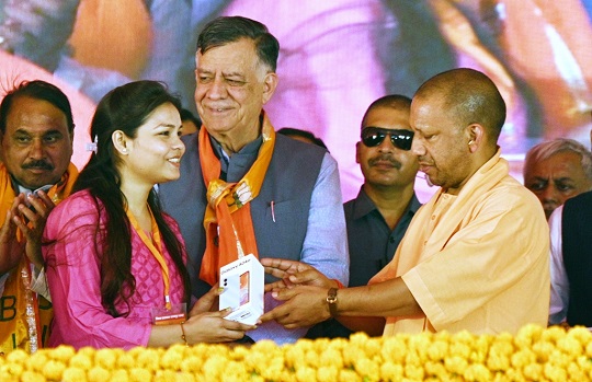 मुख्यमंत्री ने कार्यक्रम में मुख्यमंत्री आवास योजना के लाभार्थियों को आवास की प्रतीकात्मक चाभी, ‘बेटी बचाओ-बेटी पढ़ाओ योजना’ के अन्तर्गत लाभार्थियों को प्रतीकात्मक चेक, ओ0डी0ओ0पी0 योजना के लाभार्थियों को प्रतीकात्मक चेक एवं टूलकिट, विश्वकर्मा श्रम सम्मान योजना के लाभार्थियों को सिलाई मशीन तथा स्वामी विवेकानन्द युवा सशक्तिकरण योजना के लाभार्थियों को टैबलेट/स्मार्टफोन वितरित किए।