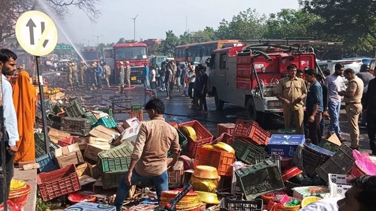 फल मंडी मे लगी भीषण आग, मची अफरा तफरी