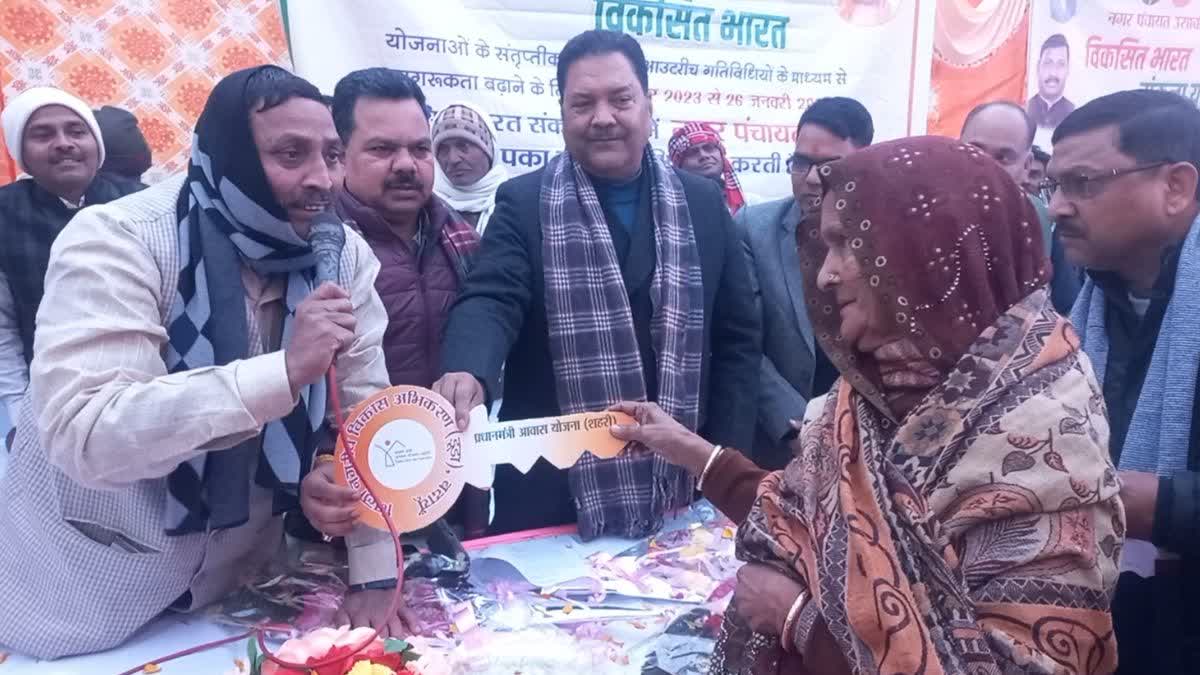 पीएम आवास की चाबी मिलते ही बुजुर्ग महिला ने सांसद को बताया, 30 हजार रुपये लिए गए