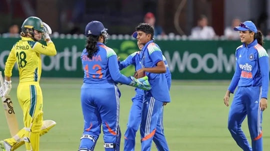 ऑस्ट्रेलिया के स्पिनरों ने बीच के ओवरों में दबाव बनाए रखा और गार्डनर ने जेमिमा (08) को एक फुल लेंथ गेंद पर विकेटकीपर के हाथों कैच आउट कराया। मंधाना और दीप्ति शर्मा (02) के आउट होने के बाद हरमनप्रीत ने पारी को संभालने का प्रयास किया। हालांकि वह भी गार्डनर की गेंद पर डीप में स्वीप शॉट खेलकर आउट हो गईं। रिचा घोष ने 23 रन बनाए।