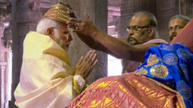 तिरुचिरापल्ली। प्रधानमंत्री नरेन्द्र मोदी ने शनिवार को पारंपरिक तमिल परिधान पहनकर यहां श्री रंगम में श्री रंगनाथस्वामी मंदिर में पूजा-अर्चना की।…
