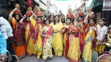 सात दिवसीय श्री मद्भागवत कथा से पहले भव्य शोभा यात्रा का आयोजन