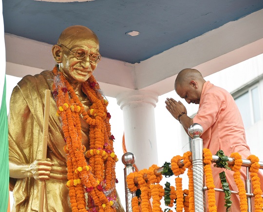 मुख्यमंत्री योगी आदित्यनाथ ने 2 अक्टूबर को राष्ट्रपिता महात्मा गांधी और पूर्व प्रधानमंत्री लाल बहादुर शास्त्री की जयंती पर उनके चित्रों पर पुष्पांजलि अर्पित की। उन्होंने गांधी आश्रम में चरखा चलाया और खादी वस्त्र खरीदे।