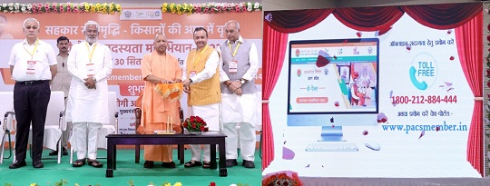सहकारिता राज्यमंत्री (स्वतंत्र प्रभार) श्री जे0पी0एस0 राठौर ने कार्यक्रम को सम्बोधित करते हुए कहा कि मुख्यमंत्री जी के नेतृत्व में वर्तमान में सहकारिता नए आयाम प्राप्त कर रही है। सहकारिता से तात्पर्य किसानों की समृद्धि तथा जन-जन की आय में वृद्धि से है। इस सदस्यता अभियान के माध्यम से साधन सहकारी समितियों (पैक्स) में 20 लाख नये सदस्यों को जोड़ने का लक्ष्य है। इसके माध्यम से प्रदेश भर में सदस्यता अभियान से 100 करोड़ रुपये अंश पूंजी एकत्रित की जाएगी। सहकारिता का तात्पर्य छोटी-छोटी पूंजी एकत्रित कर एक बड़ी पूंजी का निर्माण करना है। प्रति पैक्स कम से कम 200 सदस्य जोड़ने का लक्ष्य तय किया गया है। उन्होंने कहा कि प्रदेश में पहली बार अंशधारकों को शेयर सर्टिफिकेट दिया जाएगा तथा नाॅमिनी नियुक्त करने की सुविधा भी प्रदान की जाएगी।