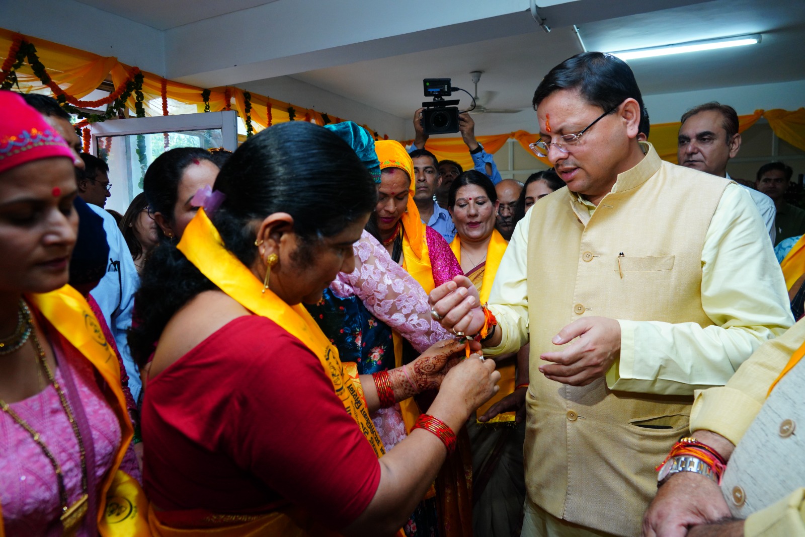 देहरादून 24 अगस्त।मुख्यमंत्री पुष्कर सिंह धामी ने सचिवालय में महिला स्वयं सहायता समूहों द्वारा लगाये गये राखी के स्टॉलों का अवलोकन किया। महिला स्वयं सहायता समूहों द्वारा बनाए जा रहे स्थानीय उत्पादों को बढ़ावा देने और उन उत्पादों की अच्छी बिक्री हो, इस उद्देश्य से राज्य में ‘मुख्यमंत्री सशक्त बहना उत्सव योजना’ शुरू की गई है। इस योजना के तहत प्रदेश के सभी विकासखण्डों में महिला स्वयं सहायता समूहों के माध्यम से 24 से 28 अगस्त 2023 तक राखियों के स्टॉल लगाये जा रहे हैं। स्टॉलों के अवलोकन के दौरान स्वयं सहायता समूहों की महिलाओं ने मुख्यमंत्री की कलाई में राखी भी बांधी।