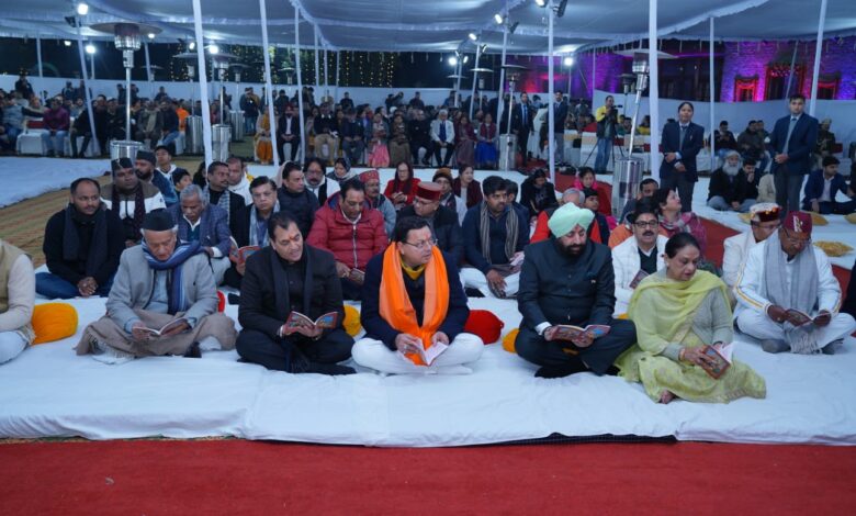 देहरादून: 19 जनवरी।मुख्यमंत्री आवास में शुक्रवार को राज्पाल ले.ज. गुरमीत सिंह एवं मुख्यमंत्री पुष्कर सिंह धामी की उपस्थिति में सुन्दरकांड के पाठ के आयोजन के साथ प्रभु श्रीराम मन्दिर प्राण प्रतिष्ठा के शुभ अवसर पर भव्य श्रीराम संध्या आयोजित हुई।