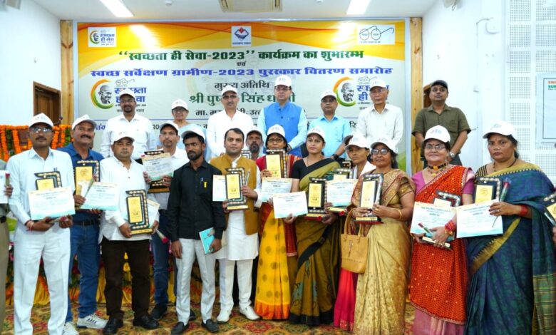 देहरादून 18 सितंबर।मुख्यमंत्री पुष्कर सिंह धामी ने सोमवार को मुख्यमंत्री आवास स्थित मुख्य सेवक सदन में स्वच्छता सेवा पखवाड़ा-2023 का शुभारंभ किया। कार्यक्रम में ‘स्वच्छ सर्वेक्षण ग्रामीण-2023’ से मुख्यमंत्री ने 15 ग्राम पचायतों को सम्मानित किया। मुख्यमंत्री ने इस अवसर पर स्वच्छता के क्षेत्र में सराहनीय कार्य करने वाले 05 पर्यावरण मित्रों को भी सम्मानित किया। ‘स्वच्छता ही सेवा गीत’ का भी इस अवसर पर मुख्यमंत्री ने विमोचन किया।