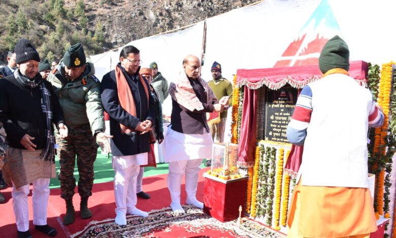 जोशीमठ/ देहरादून: 19 जनवरी।रक्षा मंत्री राजनाथ सिंह ने आज शुक्रवार को सीमांत क्षेत्र जोशीमठ ( चमोली) ढाक से बीआरओ द्वारा निर्मित 35 इंफ्रास्ट्रक्चर परियोजनाओं का उद्घाटन करते हुए देश को समर्पित किया। इसमें सात राज्यों की 06 सड़कें और 29 ब्रिज शामिल है। परियोजनाओं को बीआरओ द्वारा 670 करोड़ की लागत पर पूरा किया गया। इस दौरान प्रदेश के मुख्यमंत्री पुष्कर सिंह धामी और गढवाल सांसद तीरथ सिंह रावत रक्षामंत्री के साथ मौजूद रहे।