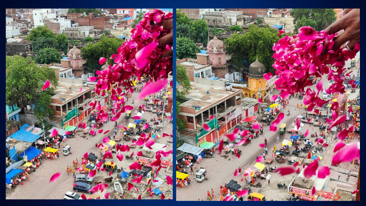 यूपी के प्रयागराज में कांवड़ियों पर हुई पुष्पवर्षा, CM के निर्देश पर सावन के तीसरे सोमवार को आसमान से हुआ अभिनंदन