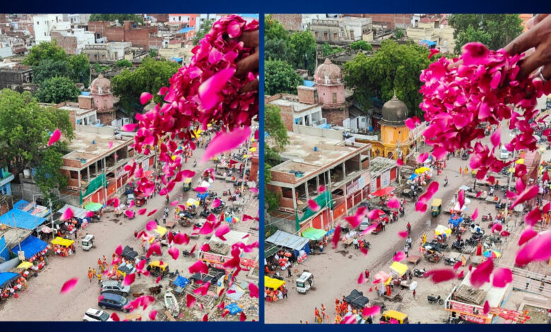 यूपी के प्रयागराज में कांवड़ियों पर हुई पुष्पवर्षा, CM के निर्देश पर सावन के तीसरे सोमवार को आसमान से हुआ अभिनंदन