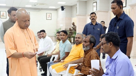 मुख्यमंत्री योगी आदित्यनाथ ने सोमवार सुबह ‘जनता दर्शन’ किया। इस दौरान प्रदेश के 50 से अधिक पीड़ित पहुंचे। मुख्यमंत्री एक-एक करके सभी के पास पहुंचे, उनका प्रार्थना पत्र लिया और अफसरों को तत्काल उचित निराकरण का निर्देश दिया। ‘जनता दर्शन’ में लोग पुलिस, बिजली, राजस्व से जुड़े प्रकरण, नौकरी, आर्थिक सहायता आदि की मांग को लेकर पहुंचे।