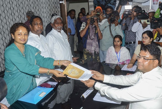 रांची। जेल में बंद झारखंड के पूर्व मुख्यमंत्री हेमंत सोरेन की पत्नी कल्पना ने राज्य की गांडेय विधानसभा सीट से झारखंड मुक्ति मोर्चा की प्रत्याशी के रूप में सोमवार को नामांकन पत्र दाखिल किया। गांडेय विधानसभा सीट के लिए उपचुनाव 20 मई को राज्य में लोकसभा चुनाव के साथ होगा।