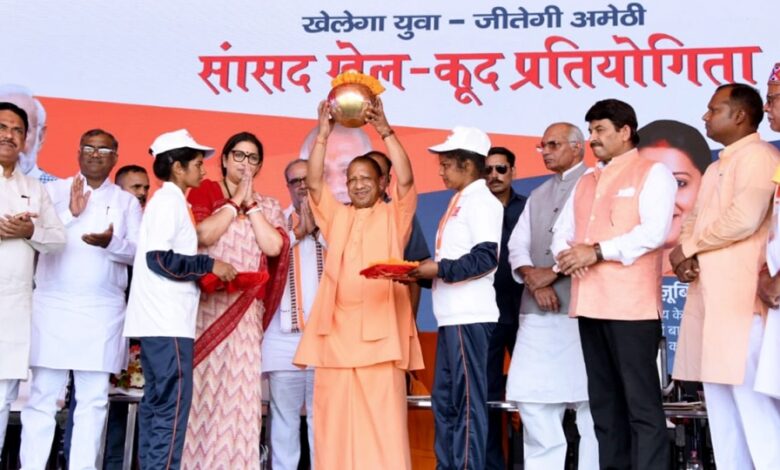 उत्तर प्रदेश के मुख्यमंत्री योगी आदित्यनाथ ने आज जनपद अमेठी में सांसद खेलकूद प्रतियोगिता के समापन समारोह में विजेता खिलाड़ियों को पुरस्कार प्रदान किये। उन्होंने लगभग 700 करोड़ रुपये लागत की विभिन्न विकास परियोजनाओं का लोकार्पण व शिलान्यास किया।
