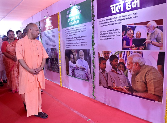 मुख्यमंत्री आज यहां जी0पी0ओ0, हजरतगंज में भारत के प्रधानमंत्री श्री नरेन्द्र मोदी जी के जन्मदिवस के अवसर पर उनके जीवन के विविध पहलुओं से परिचय कराती सूचना एवं जनसम्पर्क विभाग द्वारा आयोजित छायाचित्र प्रदर्शनी ‘कहानी भारत माता के सच्चे सपूत की’ के शुभारम्भ कार्यक्रम को सम्बोधित कर रहे थे।