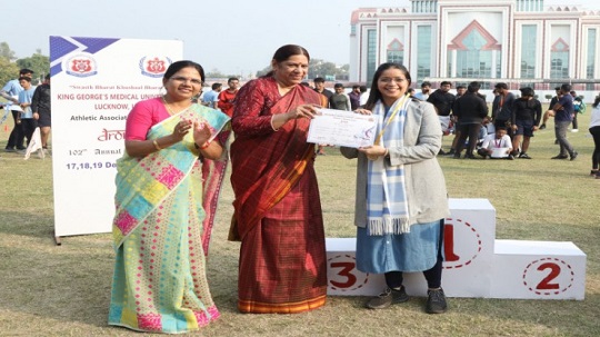किंग जॉर्ज मेडिकल यूनिवर्सिटी में 102वीं खेलकूद प्रतियोगिता का आयोजन किया गया। सरदार पटेल मैदान में हुए खेलकूद प्रतियोगिता में मेडिकोज और उनके शिक्षकों (डॉक्टरों) ने हिस्सा लिया। इस प्रतियोगिता का शुभारंभ रविवार को हुआ था। मंगलवार को इस खेलकूद प्रतियोगिता के विजेताओं को केजीएमयू की कुलपति प्रोफेसर सोनिया नित्यानंद ने पुरस्कार देकर सम्मानित किया है।