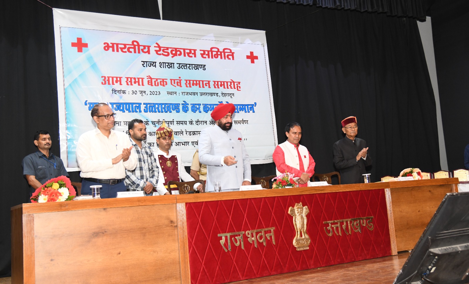 देहरादून 30 जून। अध्यक्ष भारतीय रेडक्रॉस समिति, उत्तराखण्ड/राज्यपाल लेफ्टिनेंट जनरल गुरमीत सिंह (से नि) की अध्यक्षता में भारतीय रेडक्रॉस समिति राज्य शाखा की 18वीं आम सभा बैठक सम्पन्न हुई। इस बैठक में उपाध्यक्ष भारतीय रेडक्रॉस समिति/स्वास्थ्य मंत्री डॉ. धन सिंह रावत भी उपस्थित रहे। इस अवसर पर राज्यपाल ने रेडक्रॉस समिति के मोबाइल ऐप ‘‘रेडक्रॉस उत्तराखण्ड’’ का विमोचन किया। बिट्स पिलानी कॉलेज द्वारा तैयार किए गए इस मोबाइल ऐप के माध्यम से रेडक्रॉस की गतिविधियों की जानकारी आम जन तक पहुंचेगी। इस अवसर पर राज्यपाल ने प्रदेश के सभी जनपदों में कार्यरत स्वयंसेवकों को कोरोना काल में किए गए उनके सराहनीय कार्यों के लिए भी सम्मानित किया।