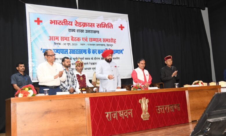 देहरादून 30 जून। अध्यक्ष भारतीय रेडक्रॉस समिति, उत्तराखण्ड/राज्यपाल लेफ्टिनेंट जनरल गुरमीत सिंह (से नि) की अध्यक्षता में भारतीय रेडक्रॉस समिति राज्य शाखा की 18वीं आम सभा बैठक सम्पन्न हुई। इस बैठक में उपाध्यक्ष भारतीय रेडक्रॉस समिति/स्वास्थ्य मंत्री डॉ. धन सिंह रावत भी उपस्थित रहे। इस अवसर पर राज्यपाल ने रेडक्रॉस समिति के मोबाइल ऐप ‘‘रेडक्रॉस उत्तराखण्ड’’ का विमोचन किया। बिट्स पिलानी कॉलेज द्वारा तैयार किए गए इस मोबाइल ऐप के माध्यम से रेडक्रॉस की गतिविधियों की जानकारी आम जन तक पहुंचेगी। इस अवसर पर राज्यपाल ने प्रदेश के सभी जनपदों में कार्यरत स्वयंसेवकों को कोरोना काल में किए गए उनके सराहनीय कार्यों के लिए भी सम्मानित किया।