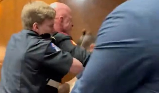 अमेरिकी संसद में आर्ड फोर्स से जुड़ी सुनवाई में उस समय हंगामा हो गया जब अमेरिकी सासद टिम शीही ने प्रदर्शन कर रहे पूर्व मरीन सैनिक ब्रायन मैकगिनिस को बैठक से बाहर निकलवाया। सुरक्षाकर्मियों ने उन्हे जबरन बाहर निकालने की कोशिश की, जिसमे ब्रायन का हाथ टूट गया। ब्रायन अमेरिका के ईरान के खिलाफ युद्ध में शामिल होने के फैसले का विरोध कर रहे थे। सुनवाई के दौरान अचानक उन्होंने चिल्लाते हुए कहा, ‘अमेरिका इस्त्राइल के लिए यह युद्ध नहीं लड़ना चाहता।’ इसके बाद पुलिस ने उन्हें बाहर निकालने की कोशिश की। रिपब्लिकन सेनेटर टिम शीही भी उन्हें बाहर धकेलने में शामिल हो गए। इस दौरान ब्रायन ने दरवाजे को पकड़ लिया और नारे लगाते रहे। इसी में उनका हाथ फस गया और टूट गया।