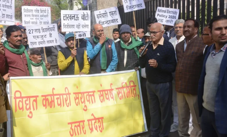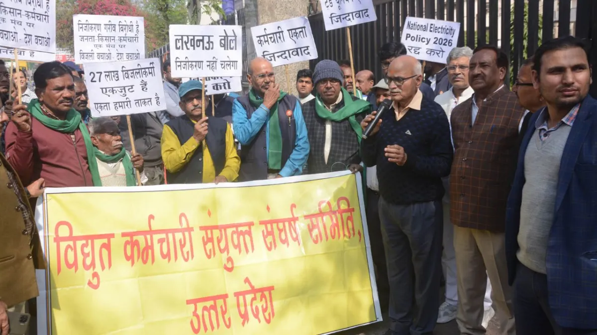 लखनऊ में बिजली कर्मचारियों का विरोध प्रदर्शन, निजीकरण और बिल वापस लेने की मांग