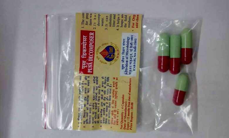 - Use of Pusa Decomposer- This decomposer is made in a form of capsules by extracting certain fungi strains which will help in faster decomposition of this stubble. The fungi strains help in production of enzymes which in turn helps the decomposition process.